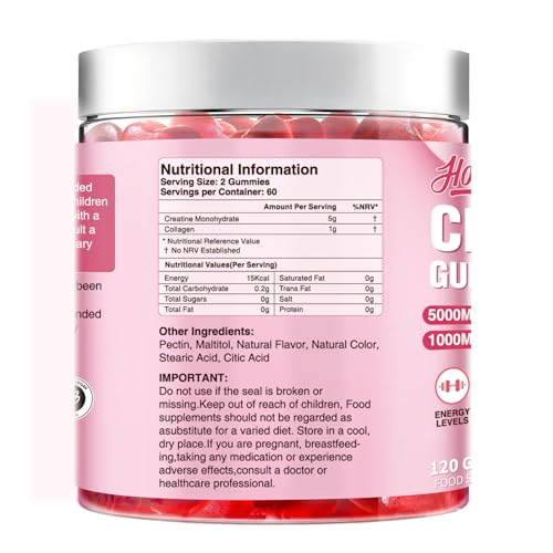 - Dual-Action Scientific Formula – Each serving creatine gummies delivers 5000mg high-purity creatine + 1000mg collagen: Clinically backed creatine enhances muscle power and recovery, while collagen supports joint and ligament repair —synergistic benefits in one easy dose.