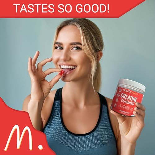 Creatine Gummies 5000mg – Strawberry Flavour Chewables – Muscle Growth, Energy, Brain Function & Recovery – 60 Gummies (30 Servings) – Pre & Post Workout Supplement – Muscle Munch Creatine Monohydrate