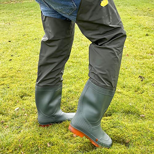 Crystals [DY46 Lightweight Hip Waders with Cleated Sole for Fishing and Hunting – PVC Bootfoot Thigh Wader – Waterproof and Available in Sizes 8 to 11 for Men and Women, Green (UK-9 EU-43)