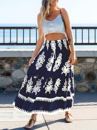 CUPSHE Boho Women's Wrap Skirt, Elastic Waist with Tie Belt, Casual Summer Maxi Skirt for Holiday, Summer Skirt Women's Long, darkblue, S