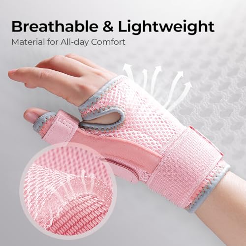 CURECARE New Upgraded Thumb Splint Right & Left Hand, Adjustable Wrist and Thumb Support for Arthritis, Thumb Brace for Sprain, Tendonitis, De Quervain's, One Size Fits Any Hand (Pink)