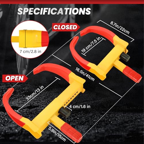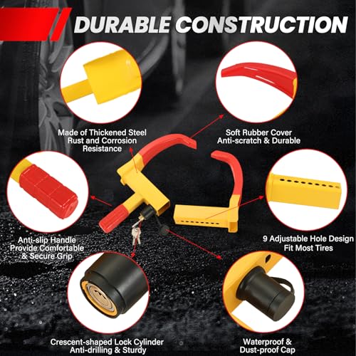 - Visible & Secure: The bright yellow and red car lock provide high visibility both day and night. This trailer wheel lock prevents your car from being stolen, ensuring greater safety.