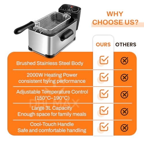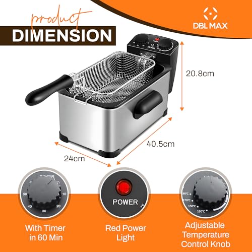 DBL MAX 3L Electric Deep Fat Fryer – Stainless Steel, Single Basket, Adjustable Temperature, Viewing Window, Cool-Touch Handle – Ideal for Chips, Chicken, Onion Rings