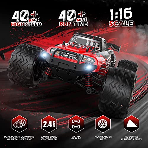 - 【Dual Powerful Motor For Super Speed】: Dual built-in motors provide great horse power, giving you 40+ KM/H high speed racing thrill. Powerful motor also provide this rc monster truck climbing ability. It can climb on 50-degree slopes effortlessly.