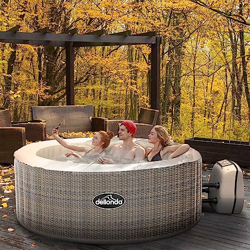 Dellonda 4-6 Person Inflatable Hot Tub Spa with Smart Pump – Rattan Effect – DL91