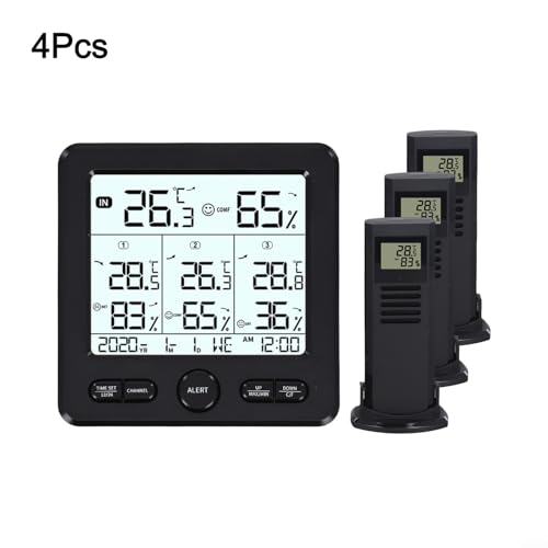 Digital Thermometer Hygrometer with 3 Sensors, Portable Wireless Weather Stations Humidity Temperature Monitor Meter for Indoor Outdoor Home Office (Black)