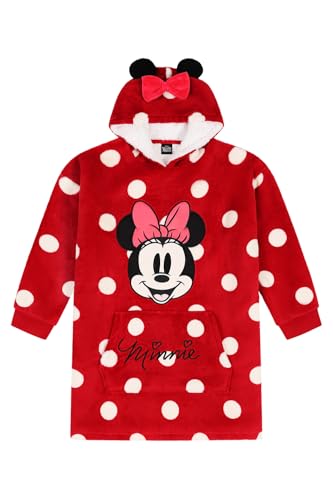 Disney Minnie Mouse Womens and Girls Matching Fully Lined Luxury Fleece Hoodie Oversized Blanket Hoody (7-10 Years) Red