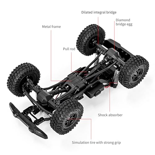- High Visibility and Safety Features: Equipped with high-brightness front and rear LED lights, this remote control crawler ensures visibility during dusk and night adventures, providing an added layer of safety while driving.