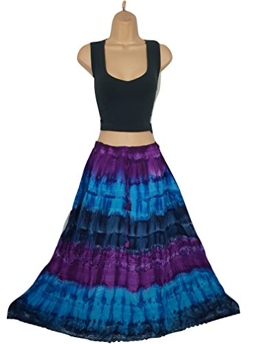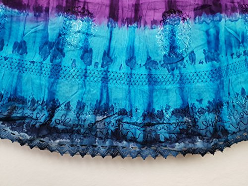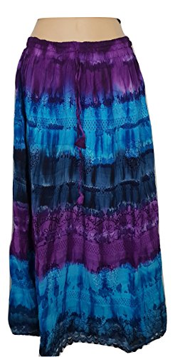 Doorwaytofashion Tie Dye Cotton Maxi Skirt Embroidered One Size UK 10 12 14 16 18 (Blue/Purple)