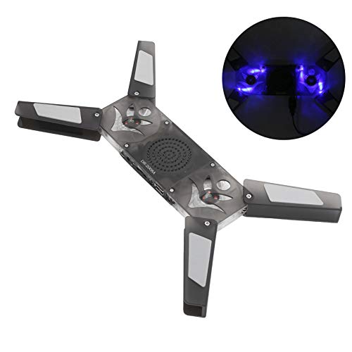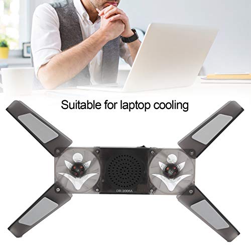 DR2008A Laptop Cooler Cooling Pad,Slim Laptop Cooling Pad with Blue LED Light,Foldable Laptop Cooler with 2 Transparent Fan and Speaker Stand