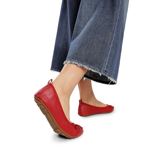 DREAM PAIRS Women's Roll Up Flats, Bow Knot Ballet Flats for Women, Ladies' Foldable Round Toe Comfort Light Weight Slip-On Dress Shoes for Driving and Party and Wedding,Size 8,RED,SDFA2409W