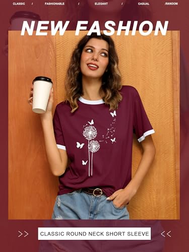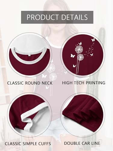 - Features: Classic round neck, short sleeve, cute dandelion Butterfly graphic print, basic summer tshirts for ladies and girls, regular fit, casual style.