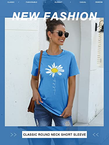 Dresswel Women Let It Be T Shirt Daisy Flower Graphic Print T-Shirt Crew Neck Short Sleeve Tee Tops
