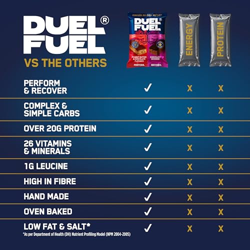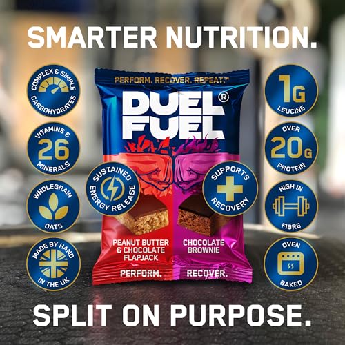 DuelFuel High Protein Snacks, 24 Snacks (12 Dual Packs, 75g Each), Over 20g Protein, Peanut Butter & Chocolate Flapjack and Chocolate Brownie. High Fibre, No Artificial Sweeteners.