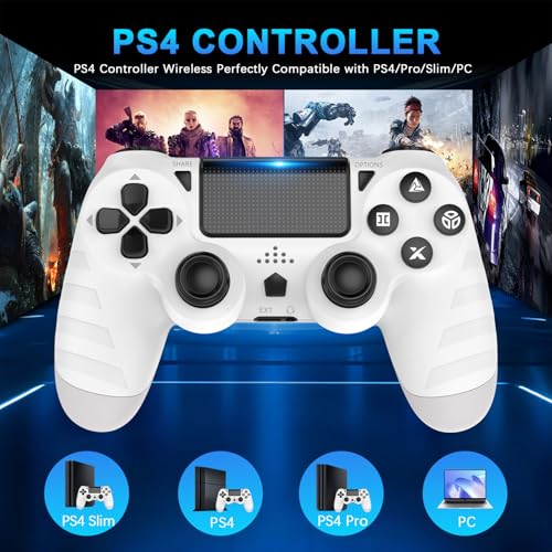 DYONDER Wireless PS4 Controllers for PS4/Pro/Slim & PC – 1000mAh Battery, 6-Axis Motion Sensor, Audio Jack (White)
