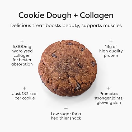 - BEAUTY + FITNESS SUPPORT: Enjoy a delicious cookie that fuels your body and enhances your glow. Each 50g portion includes 5,000mg hydrolysed collagen to support skin elasticity, joint comfort, and overall wellness from the inside out.