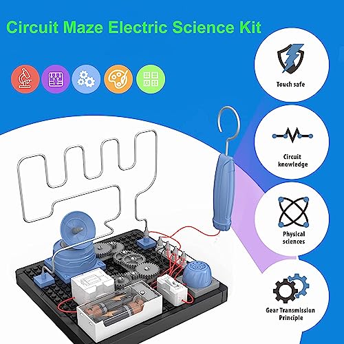 - Fun Building Block Toy : Through simple connection and part building block installation,children's hands-on ability and logical ability are exercised,and scientific principles are explored.In the maze challenge,if your metal rod touches the maze wire,the circuit is switched on and a buzzer sounds,children will improve their hand eye coordination in the competition.