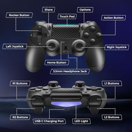 - 【Powerful Function】The wireless controller has built-in dual vibration motors and 6-axis gyroscope, providing instant vibration feedback and superior motion detection for immersive gaming. The touchpad and 3.5mm audio jack allow you to enjoy high-quality gaming effects. The upgraded joysticks and trigger buttons bring superb precision to the wireless controller. With these powerful features, you will be unstoppable in any game you play.