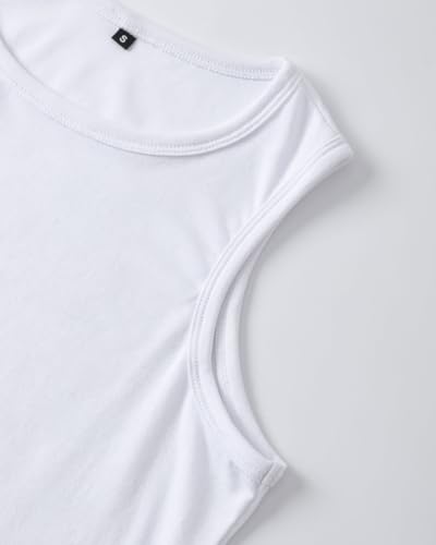 ELFIN Women's Sleeveless Tops Round Neck Plain Tank Tops Casual Elegant Summer Vest Shirts White