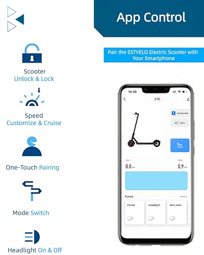 - App Control: Simply connect the electric scooter with your smartphone, and you can use the App to lock/unlock, turn on/off the lights, control the speed and start mode (zero start or non-zero start), customize the maximum speed setting, speed control, etc.