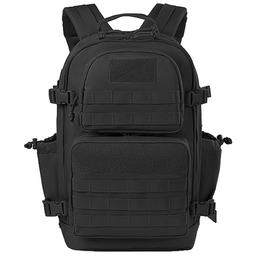- 【COMFORTABLE & TOUGH】The military-grade backpack is made of 900D polyester material, the tactical assault backpack features double stitching, heavy-duty zippers and practical drawstrings, reinforced and double stitched at all pressure points, sturdy and durable, waterproof and scratch-resistant. Ventilated mesh padded back area and shoulder straps for breathable comfort.