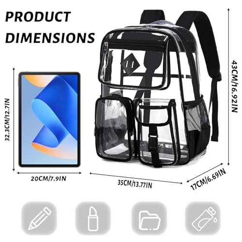 - 【Enhanced Comfort & Security】Padded adjustable shoulder straps distribute weight evenly for comfortable carrying, while zipper ensure contents remain secure. The transparent back panel maintains visibility while providing additional reinforcement for heavier loads.