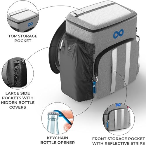 - Effortless Organization: Stay organized with our cool bag backpack featuring a spacious front pocket, dual wine bottle side pockets, and built-in covers. Easily access and protect your belongings on the go.