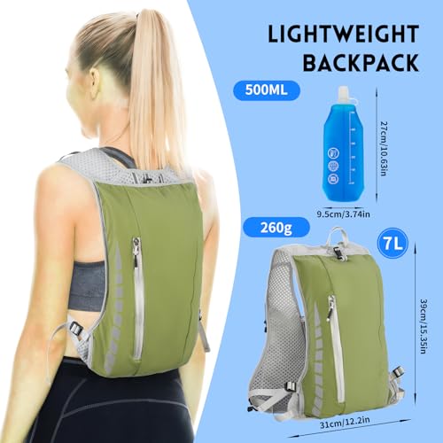 Expansea Running Vest 7L, Running Backpack with 500ml Hydration Bottle, Lightweight Adjustable Reflective Hydration Pack for Men Women