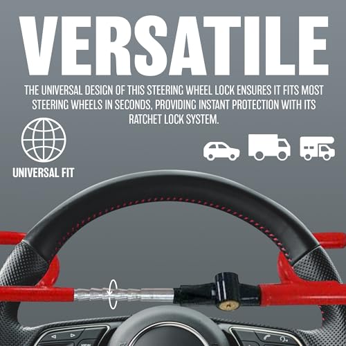 - ✔️ TOUGH & RELIABLE – The universal design of the lock is quick and easy to fit to most steering wheels. The lock is made in the United Kingdom. It is a classic part that does not require any performance parts and is suitable for any vehicle. With its anti-theft security features, you can be sure that your car or van is safe wherever you go.