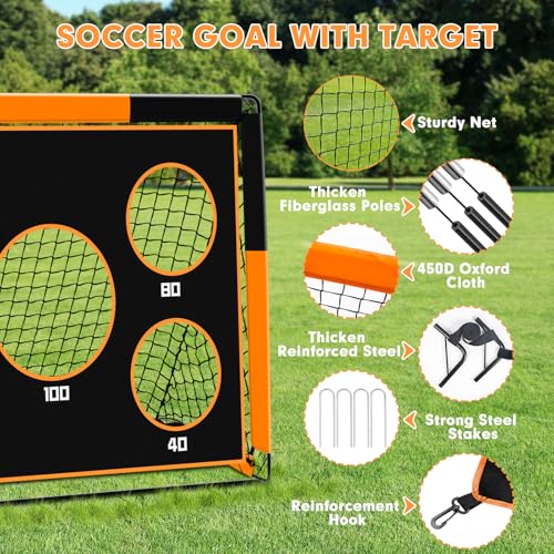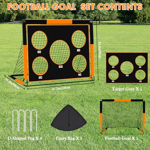 EXTFANS 2-in-1 Football Goal for Kids | Pop Up Soccer Net with Score Targets | Foldable Training Equipment for Indoor/Outdoor | Includes Carry Bag & Stakes (Orange-150 * 120 * 120cm)