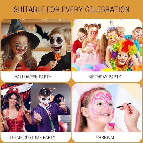 Great for Halloween makeup, school performances, birthday parties, cosplay, theatre productions, face painting booths, festivals, or simply creative fun at home. Ideal for superheroes, fairies, animals, ghouls, clowns, or day-of-the-dead designs.