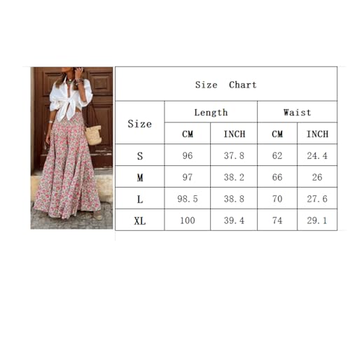 fdsmall Women's Summer Bohemian Floral Printed Elastic Waist A Line Maxi Skirt for Women Casual Beach Long Skirts (UK, Alpha, L, Regular, Regular, Pink)