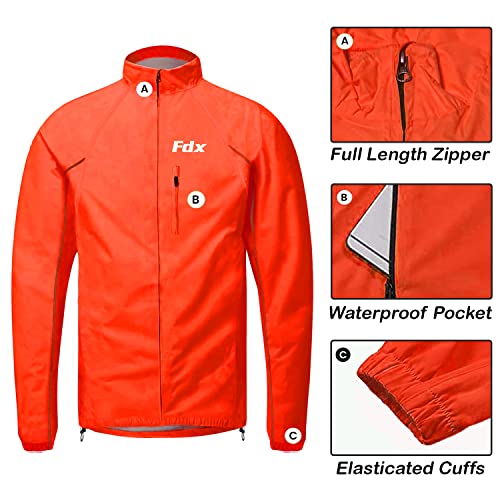 FDX Cycling Jacket Men’s – Waterproof Lightweight Breathable Cycle Rain Jersey – High Visibility Full Sleeves Reflective Tops – Windproof Coat for Running, Riding, Mountain Bike Racing – Red – M