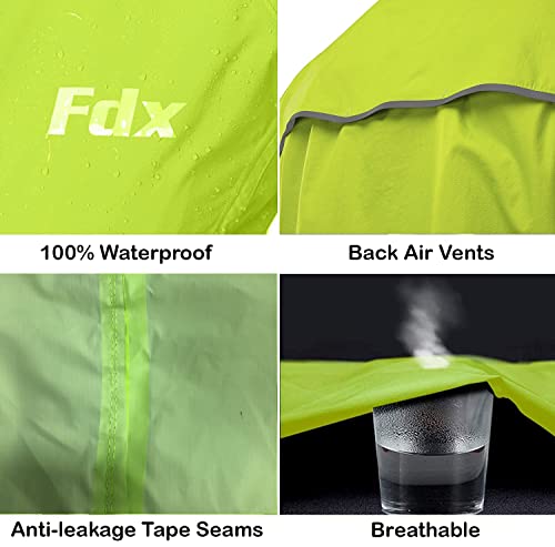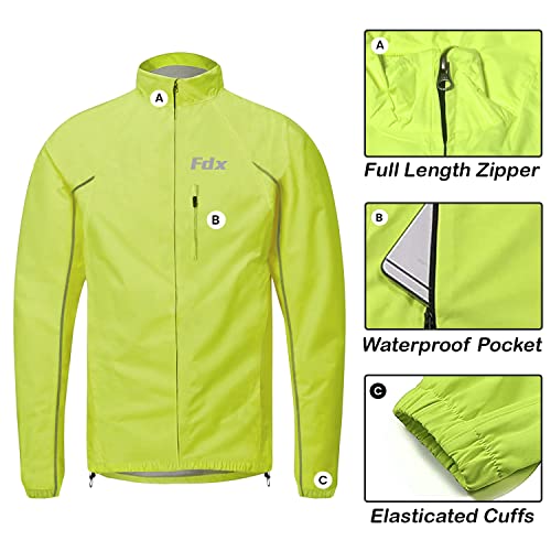 FDX Cycling Jacket Men’s – Waterproof Lightweight Breathable Cycle Rain Jersey – High Visibility Full Sleeves Reflective Tops – Windproof Coat for Running, Riding, Mountain Bike Racing – Yellow – S