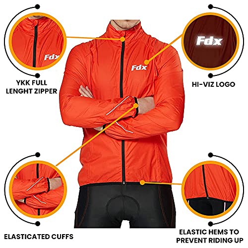 Fdx Men’s Cycling Jacket – Waterproof Lightweight Breathable Cycle Rain Tops – High Visibility Full Sleeves Taped Seams Reflective Jersey – Windproof Coat for Riding, Running, Bike Racing (Red Medium)
