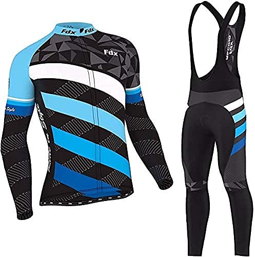 FDX Men's Limited Edition Winter Cycling Suit with Gloves, Socks – Windproof Lightweight Thermal Roubaix Cycle Clothing Set – Long Sleeve Warm Jersey, 3D Padded Bib Tight for Bicycle Riding