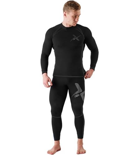 FDX Men’s Power Pro Compression Base Layer Shirt with Leggings Set – Skin Fit Sportswear for Running, Gym & Cycling (Black/Grey, XL)