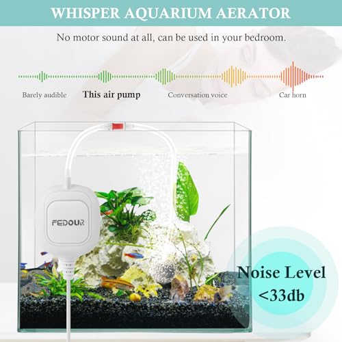 FEDOUR Mini Whisper Aquarium Air Pump, Nano Ultra Quiet Fish Tank Aerator, Fish Tank Bubbler Pump for Up to 80L Betta Tank, Nano Aquarium, Fish Bowl