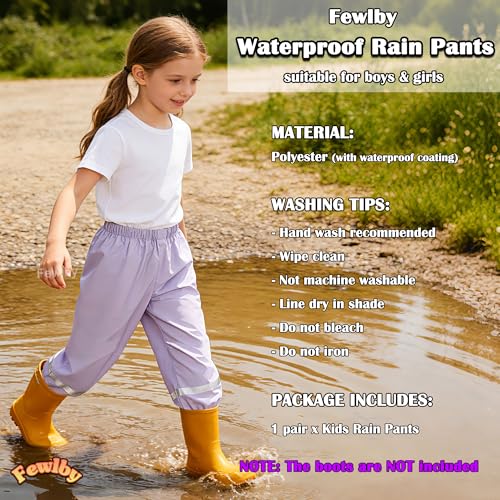Fewlby Kids Waterproof Trousers Girls Boys Rain Trousers Lightweight Mud Proof Pants Outdoor Rain Wear with Reflective Strips for Outdoor Play, Purple 3-4 Years