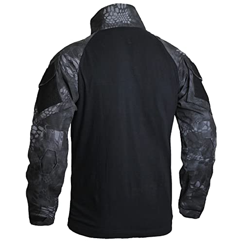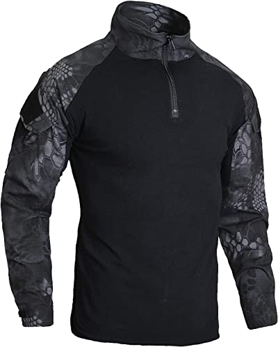 - [Multi-functionality] Details such as a zipper-type collar, cuff velcro, arm pockets, and emblem velcro are also solid. A combat shirt with outstanding wear resistance and functionality. Applies to camping, rock climbing, airsoft, hiking, survival games, military games, mountaineering, cycling and more. It is also good as an inner for outdoor jackets.