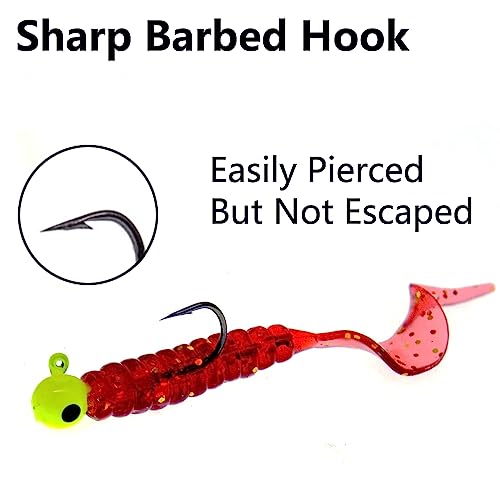 - Highly Attractive – Fishing lures with a curly tail, producing tiny water ripples when dragging, which can create a high pitched wobbling action as them swim that mimic the movements of a fleeing or frightened fish for attracting their attention, making them as a great choice for fishing stained water or heavy vegetation – calling fish out of cover.