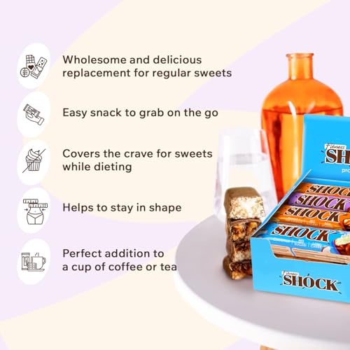 - FitnesSHOCK variety pack offers you 12 bars in 3 EXQUISITE FLAVORS: Coconut, Hazelnut-Caramel and Peanut-Salted Caramel. You will surely find your favorite taste!