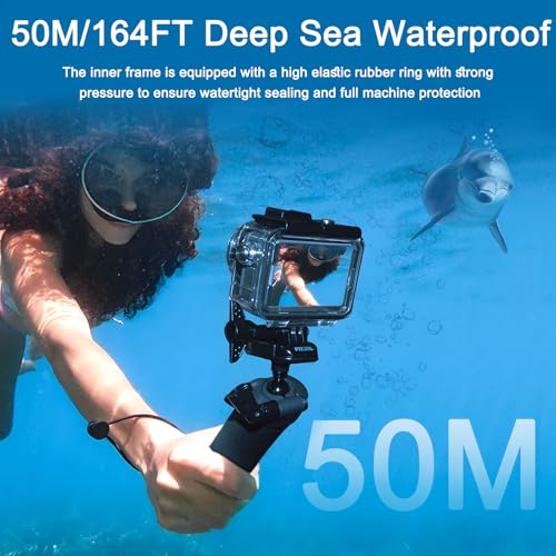 - 【Diving Depth 50 Meters/164FT】Even at a depth of 60 meters, the waterproof case allows you to take bright and vivid pictures. The lens section is made of high-permeability steel glass, which can capture wonderful moments even at depths of 60 meters.