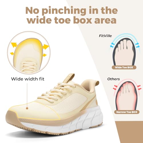FitVille ZephyLite Women’s Wide Fit Walking Shoes with Arch Support, Lightweight Breathable Mesh Trainers, Slip-Resistant Podiatrist-Designed Comfort Footwear Wide 5.5 UK Champagne