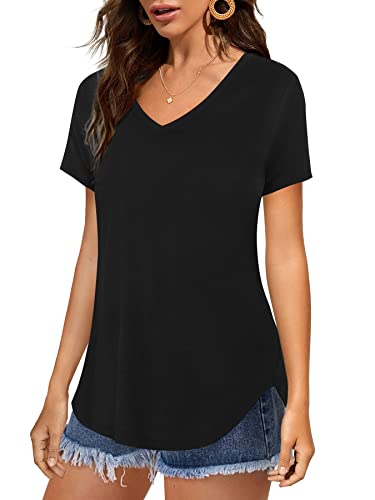 Florboom Womens T Shirts Short Sleeve V Neck Loose Summer Tees Basic Tops, Black 18 20