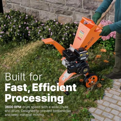 - Fast Processing with Wide Feeding Chute – A generous feeding chute and 3600RPM drum ensure quick processing of both wood and green waste. Add the mulching chute (optional) for efficient conversion of soft material into rich mulch.