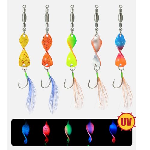 FOLANDO 5pcs Fishing Lures Set, UV Bass Mackerel Feathers Cod Lure Spinner Bait Set Multi Colored Fishing Spinners Lures with Hook Crankbaits Set for Trout Pike Bass Salmon