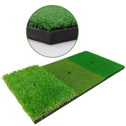 - Three distinct sections of the mat to practice from all of lies from fairway to rough. High-density tee turf so you can tee up drivers and fairway woods like you're on the driving range.