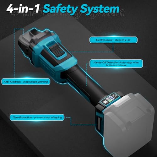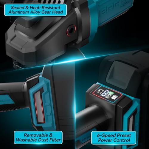 - 【Brushless Angle Grinder】The cordless angle grinder is equipped with 1300W brushless motor that ensures rapid start-up, precise stopping, faster heat dissipation and optimize your battery energy. enhancing overall efficiency and extending its lifespan.