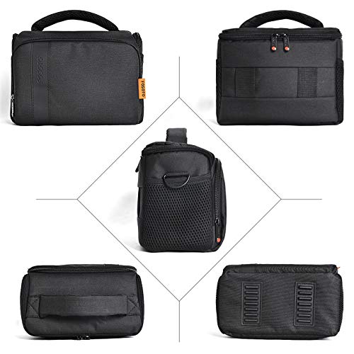 FOSOTO Waterproof Anti-Shock Camera Shoulder Bag Case Compatible for Canon EOS 4000D 2000D 77D 60D 80D 6D MarkII M50 M6, Nikon D3500 D3200 D5600 D7500, Sony Olympus with Raincover (Black)